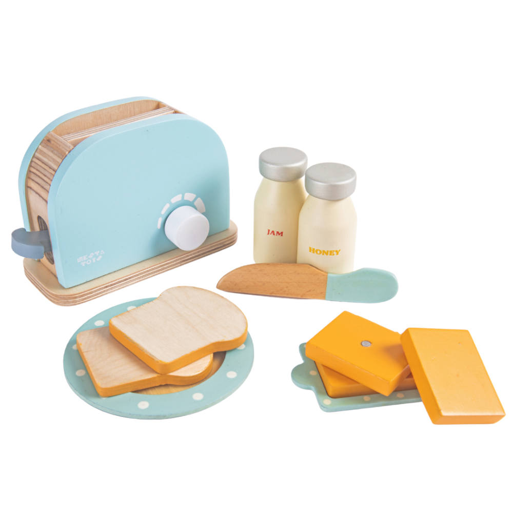 Wooden Bread Pop-Up Toaster Blue Color