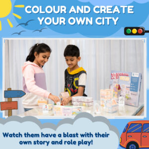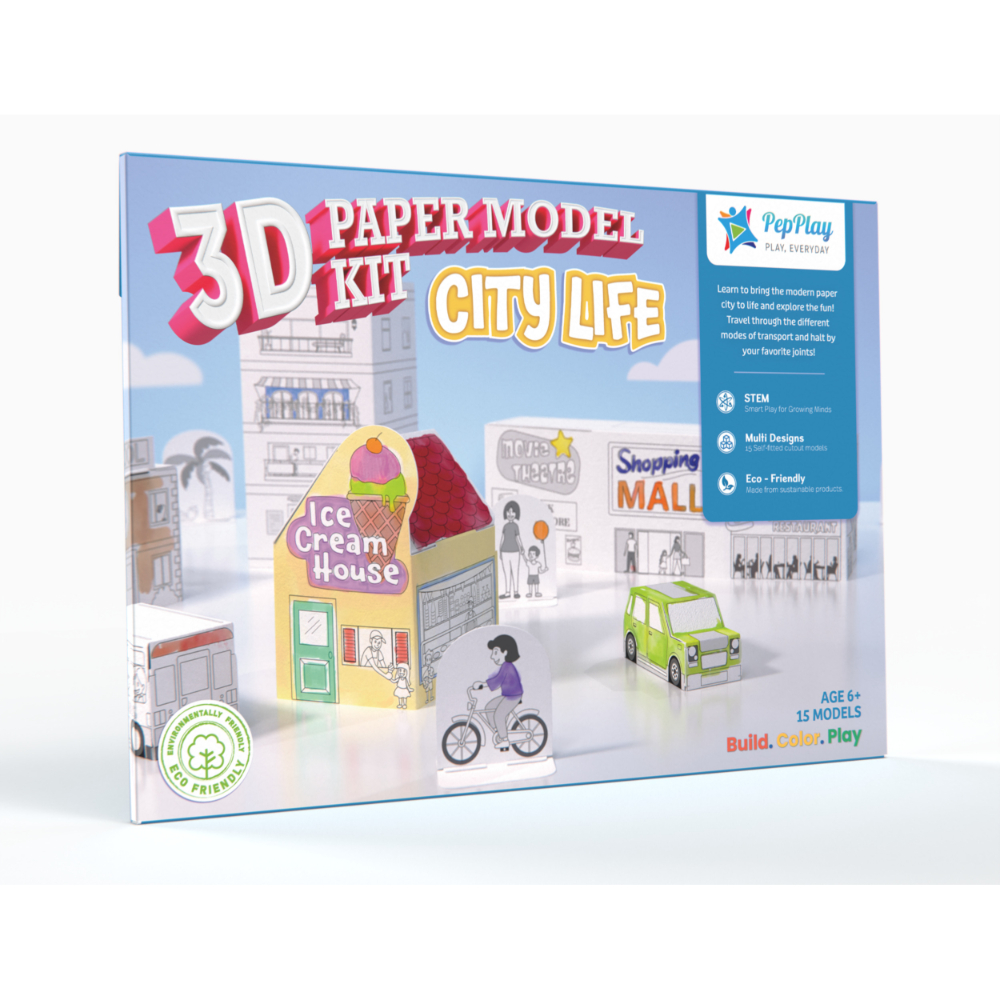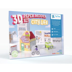 3D Paper Model Kit: City Life is a perfect STEM activity set for growing minds. With 15 self-fitted cutout paper templates, children can fold, build, color, and play with a small town in no time. This kit contains the model of a modern city where the doodles on each building are designed carefully. Kids can use any sketch pens/crayons/pencil colors on these models to add their touch to reality. Easy to fold, No-Glue activity set.