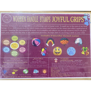 Designed for little hands, the Joyful Grips Stamp Set makes stamping fun and easy while enhancing creativity and fine motor skills. This set includes 8 wooden round-handled stamps for a comfortable grip, a food color-based ink pad for safe and vibrant stamping, and a 100-sheet paper pad for endless creative exploration. An engaging activity booklet provides guided fun, while the included cleaning foam ensures easy maintenance. A sturdy wooden storage tray keeps everything organized, making it perfect for both classrooms and home. Ideal for early learners, this set encourages hands-on play, creativity, and learning through art.