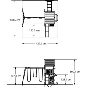 - Dimensions: Our Sunnydale play tower offers many great playing possibilities in a small space. The stilt house is therefore also ideal for small gardens. Maximum load: 150 kg. Slide length: 244 cm.