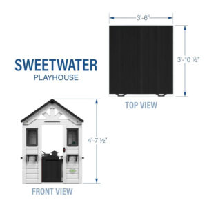 The Backyard Discovery Sweetwater Playhouse inspires endless fun and creative activities for the whole family. This charming outdoor playhouse combines sturdy construction with thoughtful play features in a delightful design. Crafted from naturally durable cedar wood with a crisp white finish and elegant black trim, this wooden playhouse creates a beautiful addition to any play space. The large windows welcome natural light and gentle breezes, providing a welcoming retreat where children can let their imaginations soar. From decorative flowerpot holders for budding gardeners to a working half door that creates their own special entrance, your little ones will love the charming details. The snack bar window adds another layer of fun, perfect for hosting delightful tea parties or running a café. Inside this magical clubhouse, children will discover a world of possibilities with the toy sink, stove, cordless phone, and variety of engaging accessories that encourage play. The Sweetwater provides the perfect setting for both quiet creative moments and lively adventures with friends. Plus, this stylish outdoor playset is ready to assemble with pre-cut, pre-stained, and pre-drilled pieces for a quick and hassle-free setup. Bring home the Sweetwater Playhouse and transform your backyard into an enchanting space for lasting memories.
