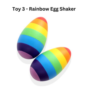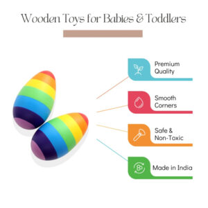 - Egg Shaker (2 Qty)- The Rainbow Wooden Egg Shaker Toy is a perfect fit for young hands, these allow your little ones to strengthen their fine motor skills while releasing a soft, mellow tone.