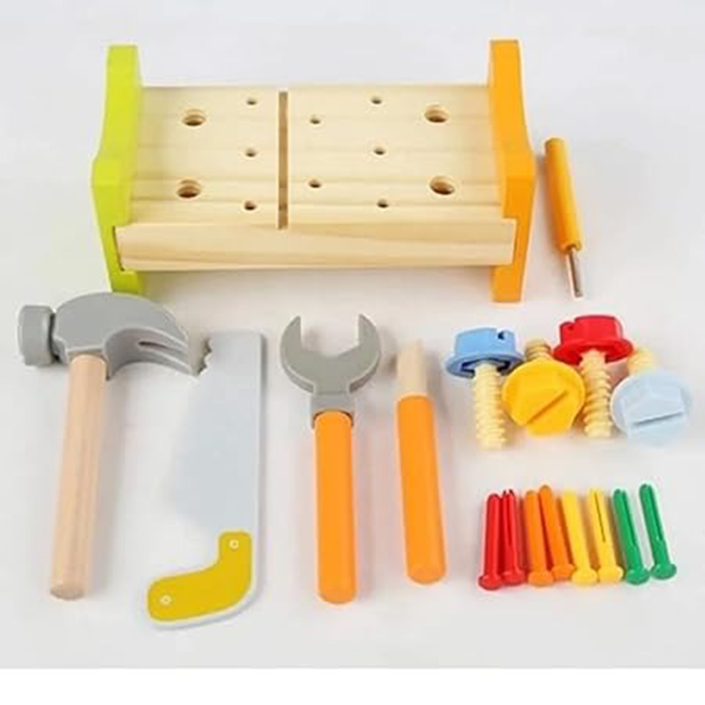 Tool Bench Small Includes a wooden workbench, hammer, wrench, nuts, bolts, and more, providing everything young builders need. Your Little Engineer Pretend Construction Tools, Role Play Workshop Tools Kit Play Tool for Kids.
