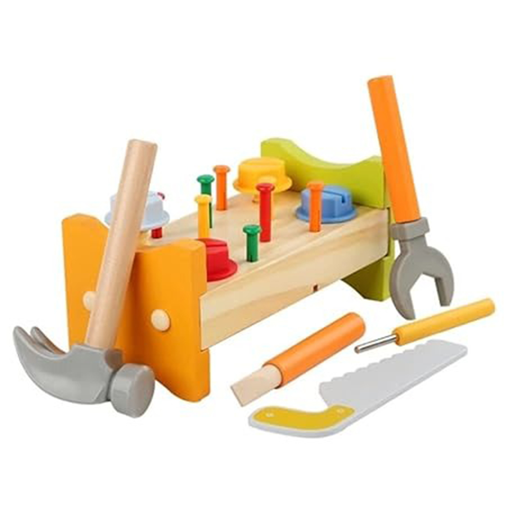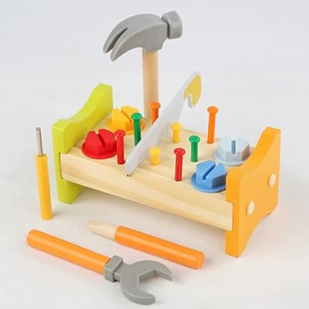 - Boost cognitive skills while offering a great way for children to explore shapes and colors. This Tool Bench Small helps enhance the development of fine motor skills, hand-eye coordination, and problem-solving abilities through interactive play.